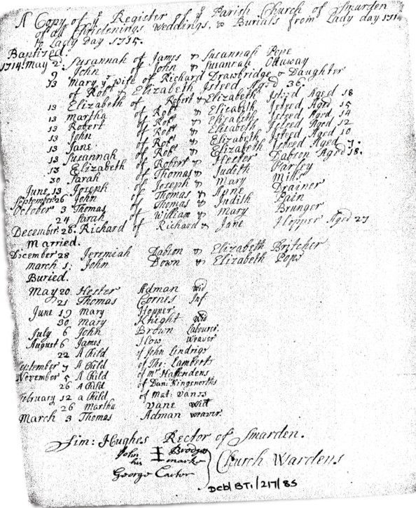 First introduced in 1538 the Parish registers of the Church of England record baptisms, marriages and burials.